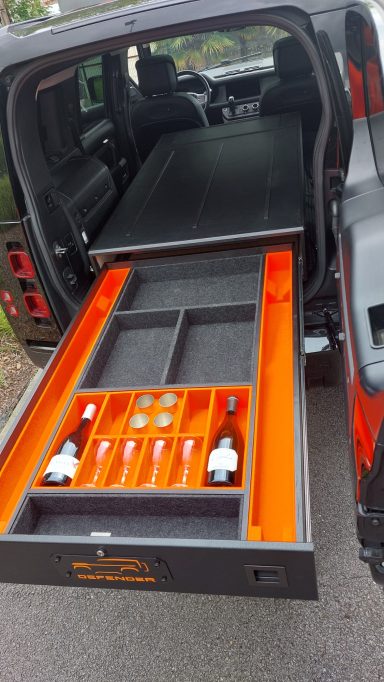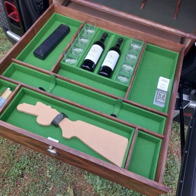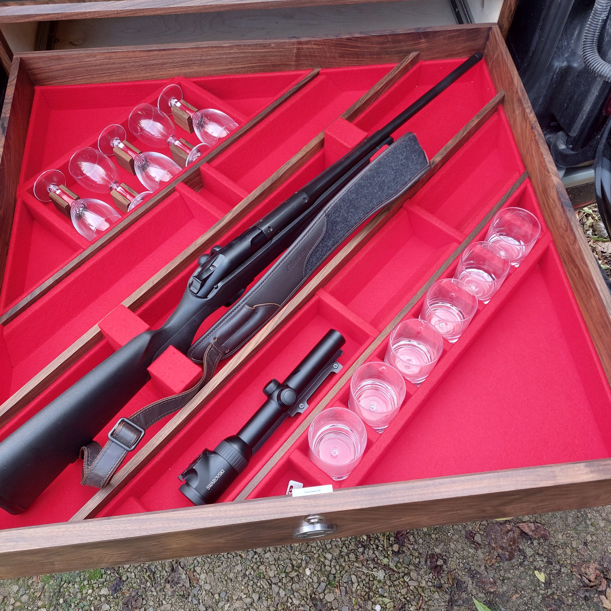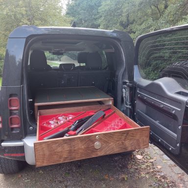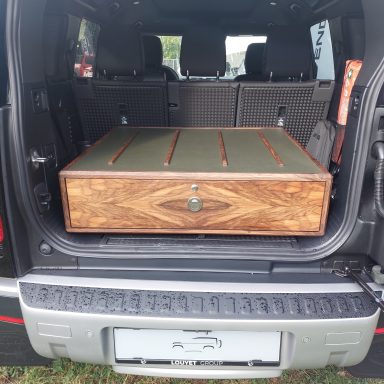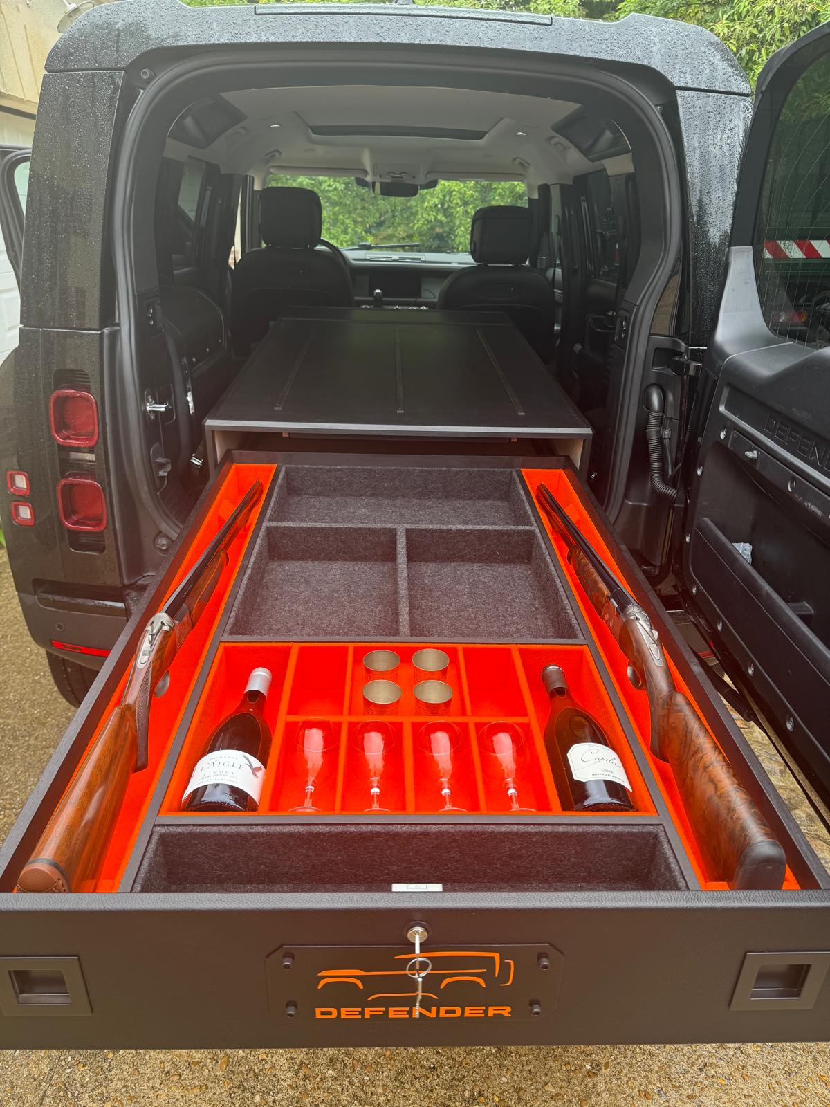Malle aux dimensions exactes du coffre d'un Land Rover Defender 110. De quoi ranger en toute sécurité une ou plusieurs armes, les accessoires et quelques rafraichissements.